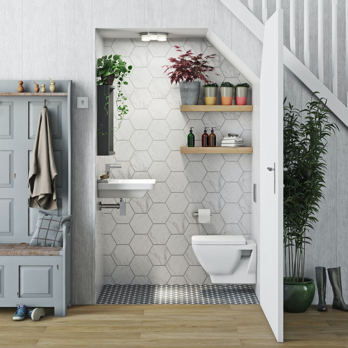 Bồn cầu treo tường sẽ chiếm ít không gian vật lý hơn và cho phép tạo nhiều không gian hơn bên dưới. Ngoài ra, bạn có thể tận dụng diện tích bên dưới để đặt những chiếc giỏ đựng đồ nhỏ đựng những vật dụng cần thiết như giấy vệ sinh và các sản phẩm tẩy rửa.