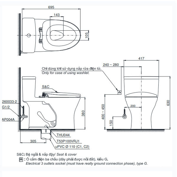 Phù hợp lắp đặt với nắp rửa điện tử WASHLET (tùy chọn)