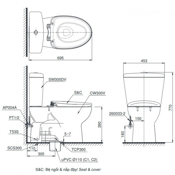 Tên sản phẩm: Bàn cầu TOTO CS300DT3Y1#W