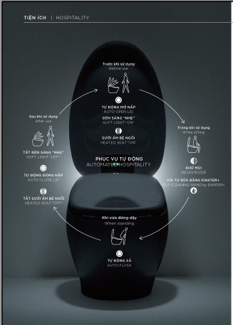 Dòng sản phẩm Neorest còn có chế độ đóng / mở nắp tự động, thiết bị sẽ tự xả, khử mùi và sấy khô khi chủ nhân bước ra khỏi phòng. Giờ đây, phòng tắm là nơi mà chúng ta có thể yên tâm tận hưởng cảm giác sạch sẽ và tiện ích tối ưu – khi vài thế kỉ trước, người ta thường nghĩ đến trong sự ngán ngẩm về mức độ sạch sẽ và thoải mái.