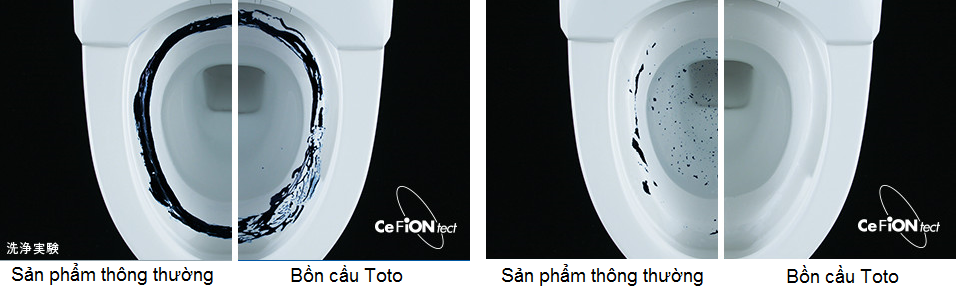Công nghệ chống bám bẩn CeFiONtect trong bồn cầu TOTO giúp cho bề mặt bồn cầu luôn sáng bóng, không bị bám bẩn và hạn chế tối đa vi khuẩn khi sử dụng.
