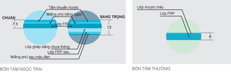 Là công nghệ sản xuất với chất liệu bồn tăm bằng sợi thủy tinh nhân tạo kết hợp với nhiều lớp phủ đặc biệt, trong đó lớp phủ ngọc trai là lớp phủ quan trọng nhất giúp cho bề mặt bồn tắm sáng lấp lánh như trang sức