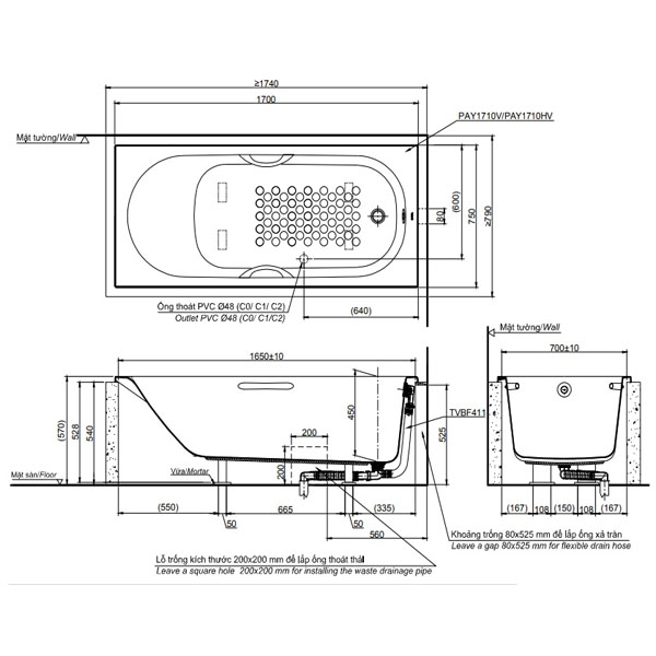 Bồn tắm nhựa TOTO PAY1725HVC/TVBF411 với thiết kế góc cạnh đẹp mắt tạo nên không gian phòng tắm tinh tế, sang trọng giúp bạn có không gian thư giãn ngay tại nhà. Bề mặt chống trơn trượt giúp trải nghiệm tắm được an toàn và thoải mái hơn. Với thiết kế tay vịn và điểm tựa đầu tiện lợi sẽ đem lại những cảm giác thoải mái nhất khi sử dụng bồn tắm.