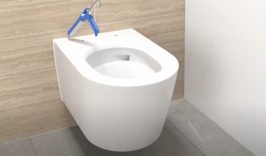 Khi đã thực hiện xong việc lắ đặt thân bồn cầu vào giá treo, bạn hãy dùng đến vữa xi măng hoặc là silicon để trét vào các kẽ hở, để đảm bảo sự kiên cố, tránh rỉ nước lên sàn và tính thẩm mỹ.
