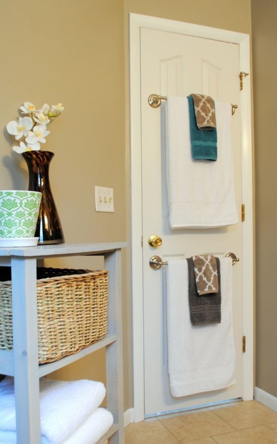 Không gian trên cửa phòng tắm, nhà vệ sinh vốn dĩ là không gian “chết”. Chẳng có lí do gì bạn không biến nó thành nơi hữu ích khi lắp 1,2 thanh kệ lưu trữ. Kệ trên cửa phòng tắm phù hợp tích trữ giấy vệ sinh, dầu tắm hay treo khăn hoặc quần áo.