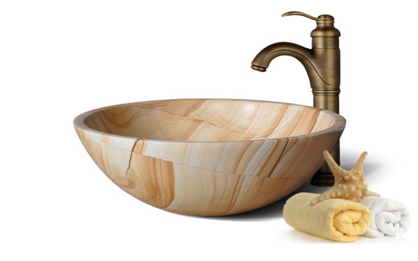 Thiết bị vệ sinh cũng có thể được làm bằng đá tự nhiên hoặc đá nhân tạo. Với chất liệu đá tự nhiên thì khiến sản phẩm dễ thấm nước, dễ vỡ khi va chạm nếu bề mặt không được phủ tốt. Còn đá nhân tạo thì không được nung mà sử dụng 70% bộ đá và sử dụng chất kết dính là 30% keo resin góc polymer nên được tạo thành các hình khối nhiều hơn và còn được sử dụng làm chi tiết nối liền giữ các thiết bị vệ sinh với nhau.
