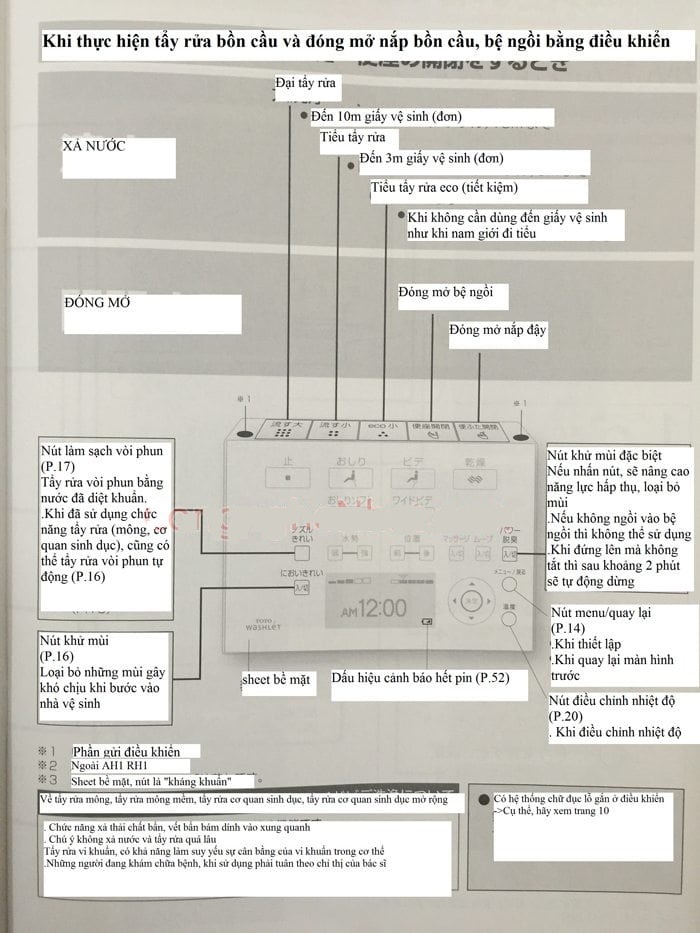 Hiện nay bệt ToTo của Nhật được nhập khẩu khá nhiều về Việt Nam do nhu cầu sử dụng hàng chất lượng cao gia tăng, xin chia sẻ với các bạn bản dịch chức năng của bộ bệt ToTo: