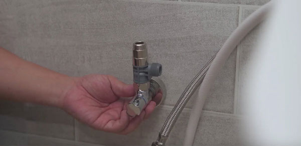 Bước 8: Nối ống nước của nắp Washlet vào khớp nối chữ T, sau đó mở van khóa