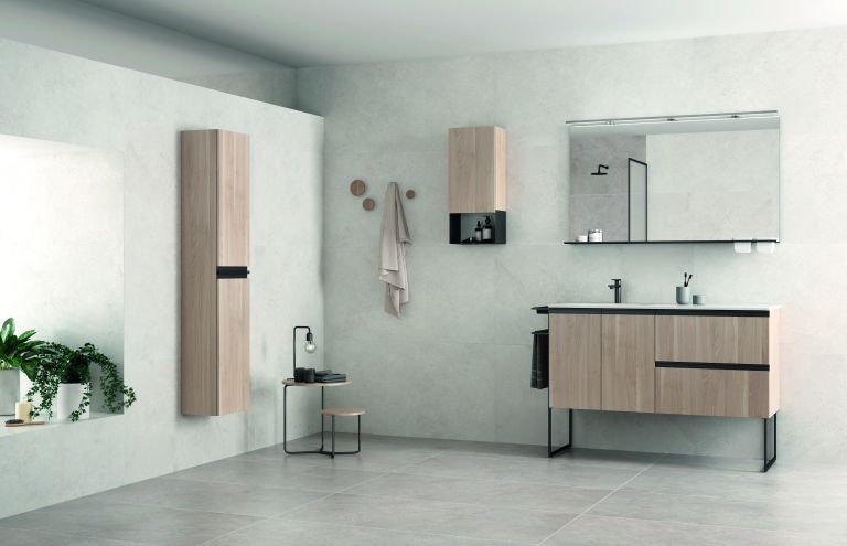 Đồ nội thất treo tường có lợi thế là để lại sàn bên dưới mang lại ấn tượng về không gian thêm, lý tưởng như lưu trữ phòng tắm nhỏ hoặc trong phòng tắm gia đình.