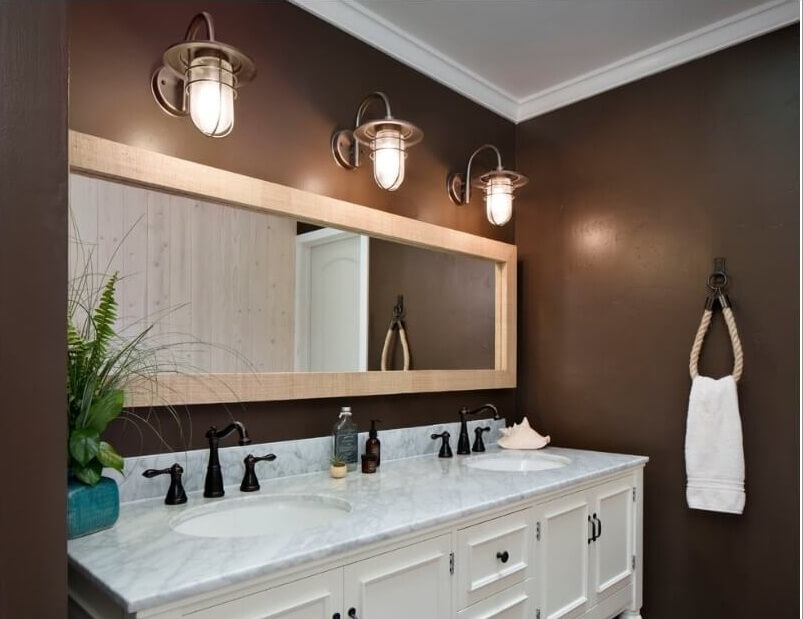 Bạn cũng có thể lựa chọn hai đèn treo tường bóng râm ở hai bên gương để cung cấp thêm ánh sáng khi bạn sử dụng gương.