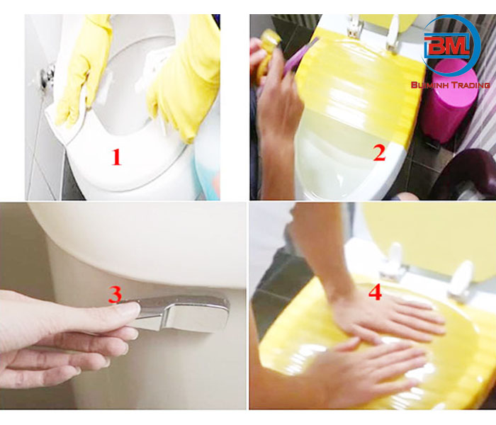 - Phủ khăn hoặc báo lên sàn nhà vệ sinh và trên tường tránh nước bẩn văng lên bám dính gây ô nhiễm trong quá trình thực hiện