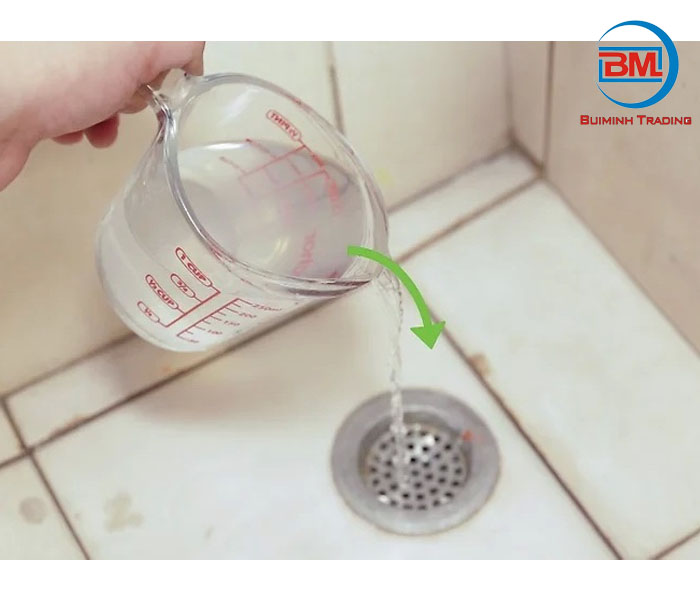 Cách làm vô cùng đơn giản: bạn chỉ cần đun nước sôi sau đó đổ trực tiếp xuống lỗ thoát nước của sàn và đánh bay mảng tóc hoặc cặn tồn đọng trong cống. Nếu không gặp sự cố nghiêm trọng thì vấn đề sẽ được xử lý nhanh chóng. Bạn có thể vắt thêm một ít chanh để tăng hiệu quả cao hơn. Đặc biệt nên đeo khẩu trang để bảo vệ sức khỏe khi xử lý.