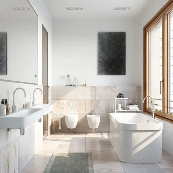 Kết hợp ánh sáng tự nhiên: Nên tận dụng và cải thiện nguồn sáng tự nhiên để cung cấp ánh sáng cho phòng tắm. Ánh sáng tự nhiên tạo cảm giác thư giãn cho người dùng bên cạnh đó giảm nấm mốc, mùi hôi giảm chi phí năng lượng.