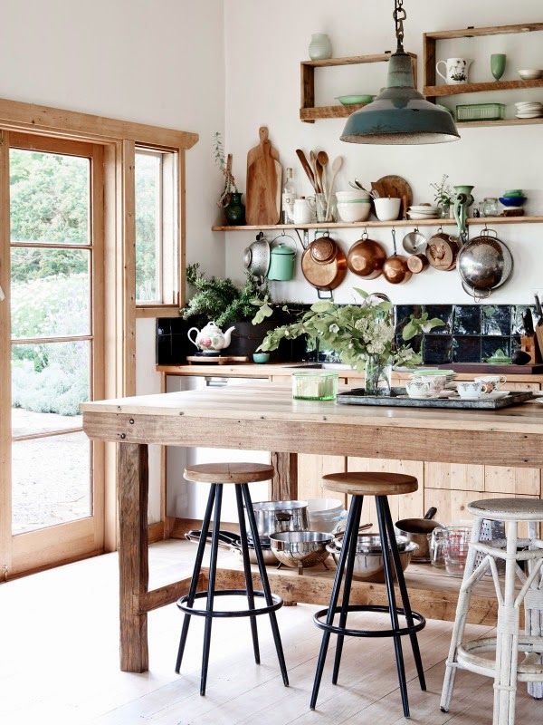 Từ nồi và chảo treo trên tường cho đến lọ và chai đựng nguyên liệu nấu ăn là một điều quan trọng của một nhà bếp nông thôn.Hiển thị tất cả các dụng cụ nhà bếp và phụ kiện được đánh giá cao của bạn là một cách tuyệt vời. Xem xét các kệ đầy sách nấu ăn, kệ gia vị, bát trái cây, thùng bánh mì bằng gỗ hoặc bằng những vật liệu tự nhiên nhất có thể