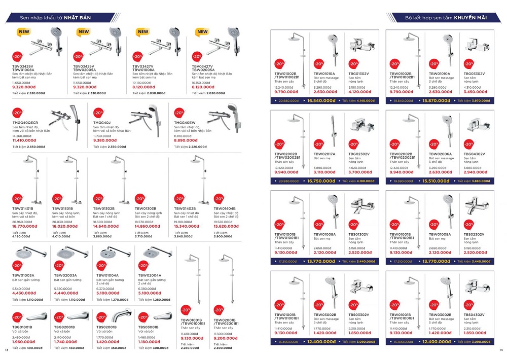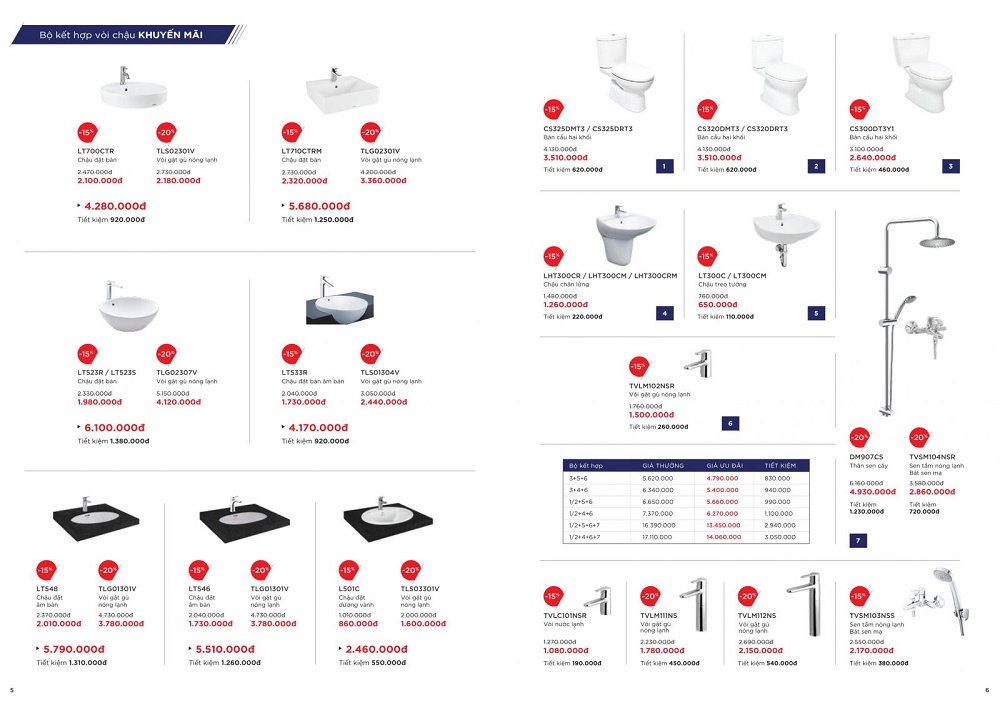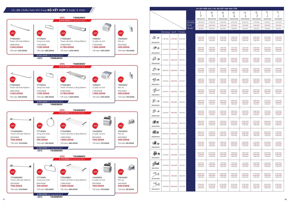 _ Sen tắm, vòi chậu thiết kế nhiều kiểu dáng độc đáo, tinh tế kết hợp hoàn hảo với các mẫu lavabo. Khi mua bộ kết hợp sen tắm hoặc vòi chậu kết hợp giảm giá lên tới 25%