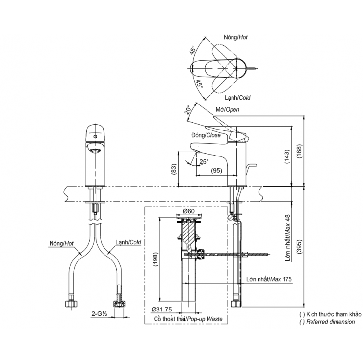 Áp lực nước: 0.05MPa ~ 0.75MPa